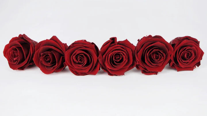 Roses stabilisées 6 cm - 6 têtes - Rouge Royal